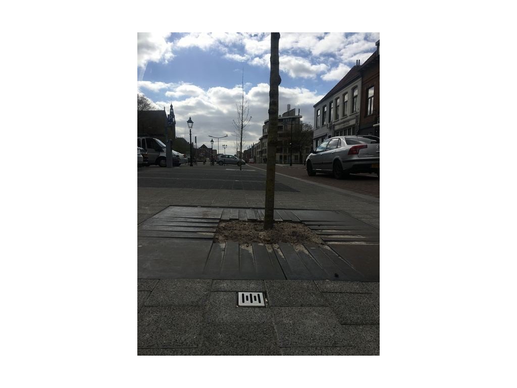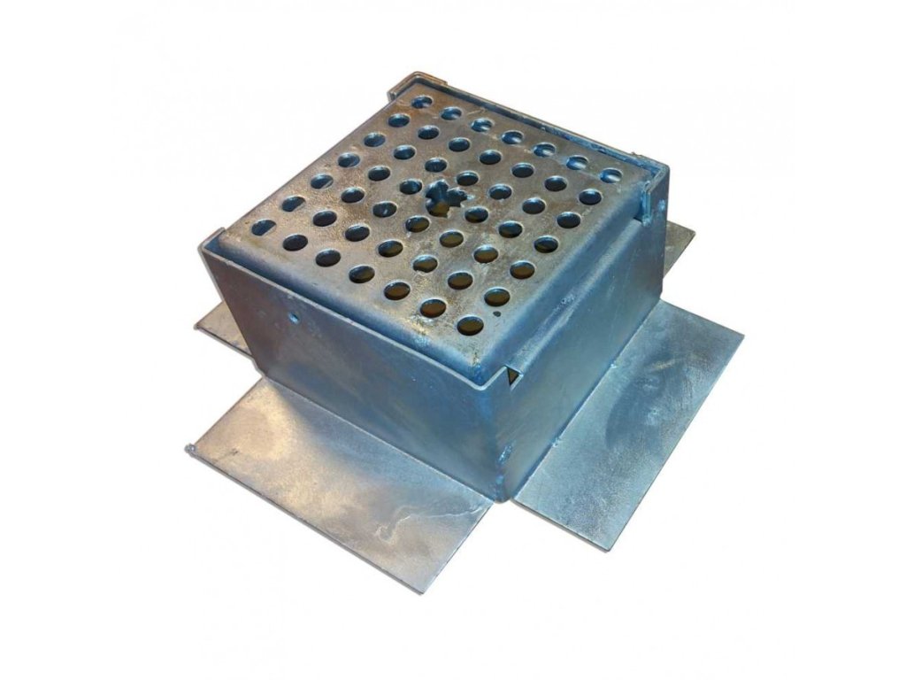 Ocelový uzávěr s panty, 100 x 100 mm sloužící k vytvoření zavlažovacího a provzdušňovacího systému kořenového prostoru nově vysazovaných stromů.