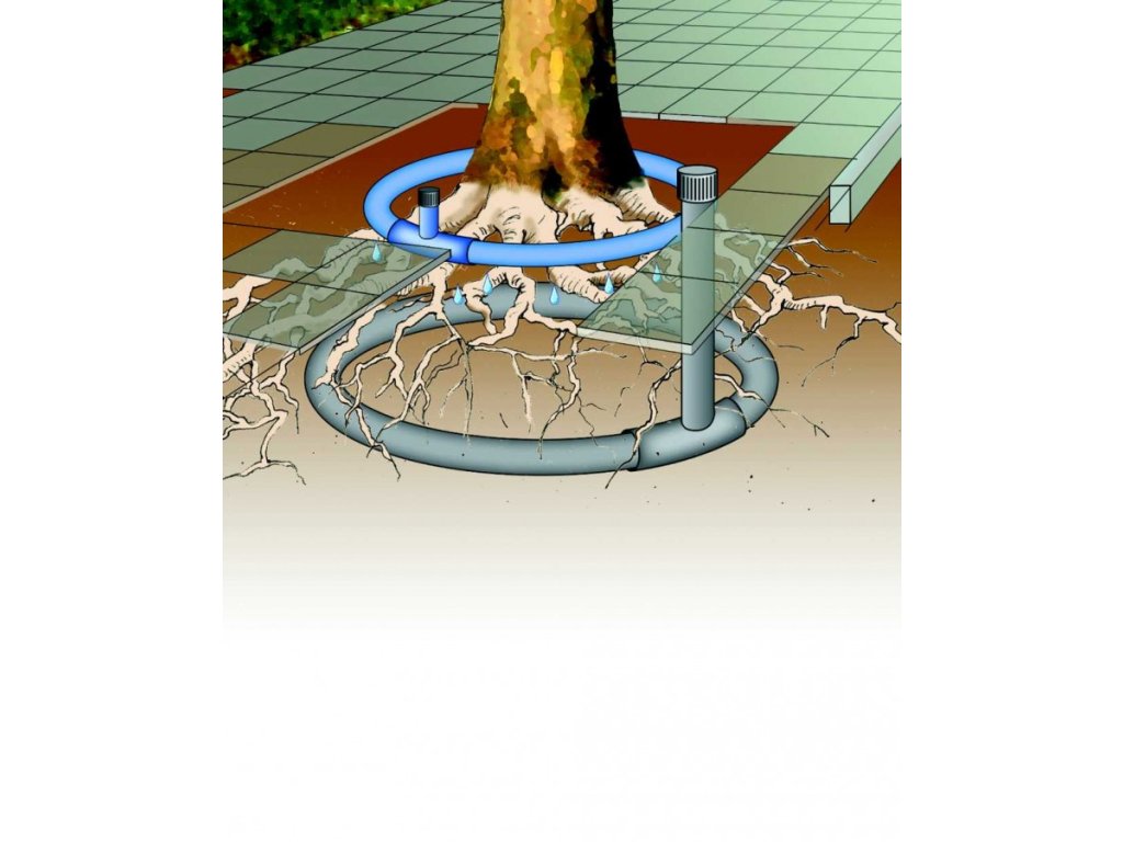 Ocelový uzávěr s panty, 170 x 170 mm sloužící k vytvoření zavlažovacího a provzdušňovacího systému kořenového prostoru nově vysazovaných stromů.