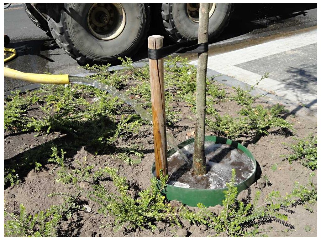 Sloužící k vytvoření vodního reservoáru při zavlažování kořenového prostoru nově vysazovaných stromů.