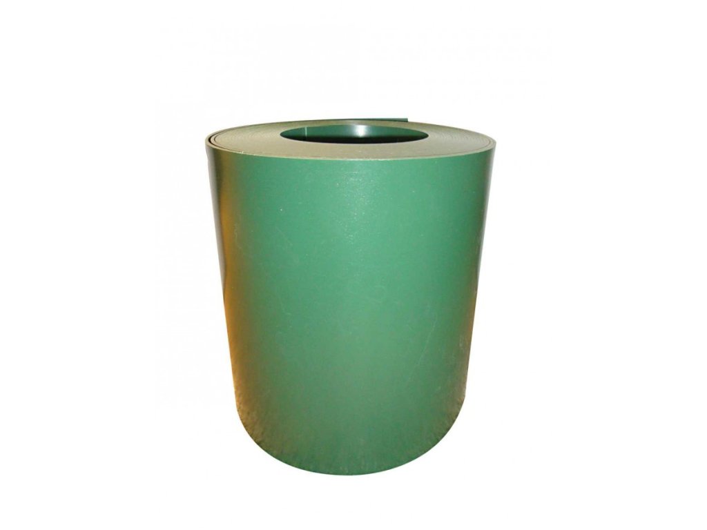Zelený, recyklovatelný LDPE o tloušťce 3 mm a výšce 30 cm.