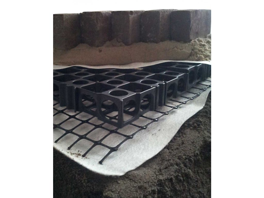 Otevřená struktura vytváří prostupnou vrstvu a brání kořenům stromů v poškozování dlažby nebo vozovky.