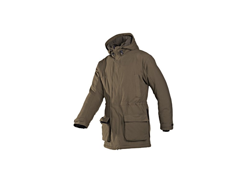 Lovecká, nepromokavá (plovoucí memrána a podlepené švy), prodyšná a větruodolná bunda s vnitřní fleecovou vložkou. Barevné provedení KHAKI. Odepínací kapuce s kšiltem schovaná v límci. Dvě velké vnější kapsy s klopou, dvě šikmé kapsy na zateplení rukou, dvě vsazené kapsy a jedna vnitřní kapsa. Vysoký límec chránící i bradu. Nastavitelné lemy kolem zápěstí. Dvoucestný hlavní zip krytý légou. V zadové části 1 kapsa, která jde rozepnout ze tří stran, vyklopit a vznikne nepromokavý "podzadník". Popruh na uchycení dalekohledu. Délka zad - 82 cm (vel. L). Vnější materiál: 100 % Polyester (Siopor) Nepromokavost: 5.000 mm WVP Prodyšnost: 3.000 mm GR Úprava: NOISLESS - speciální "nešustivá" úprava tkaniny WR-finish - speciální povrchová úprava pro vodoodpudivost a nešpinivost Velikost: 2XLDoplňkové parametry