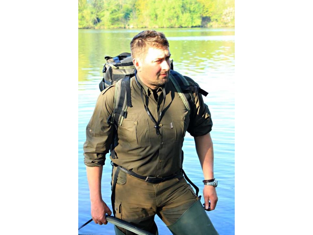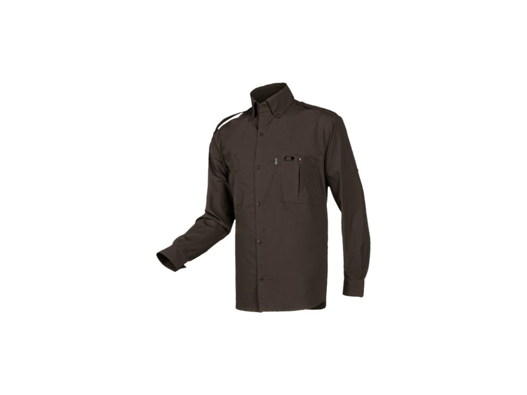 Lovecká pánská košile s dlouhým rukávem. Barevné provedení BROWN. Dvě velké vnější náprsní kapsy. Vysoký límec. Délka zad - 80 cm (vel. L). Vnější materiál: 67 % Polyester + 33 % Bavlna Úprava: BuzzX - speciálním roztokem napuštěná tkanina - proti klíšťatům, mravencům, blechám, komárům apod. Velikost: S - 3XLDoplňkové parametry